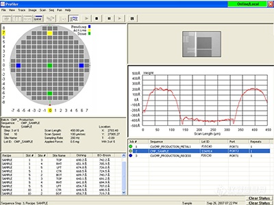 Tencor P-17能够测量从纳米到1000m的2D和3D台阶高度。这能够对对蚀刻、溅射、二次离子质谱、沉积、旋涂、化学机械研磨和其他工艺中沉积或去除的材料厚度进行量化。Tencor P-17具有恒力控制,可以不管台阶高度如何,动态调整以在样品表面施加相同的力。这能够保持良好的测量稳定性,能够精确测量软材料,例如光刻胶。